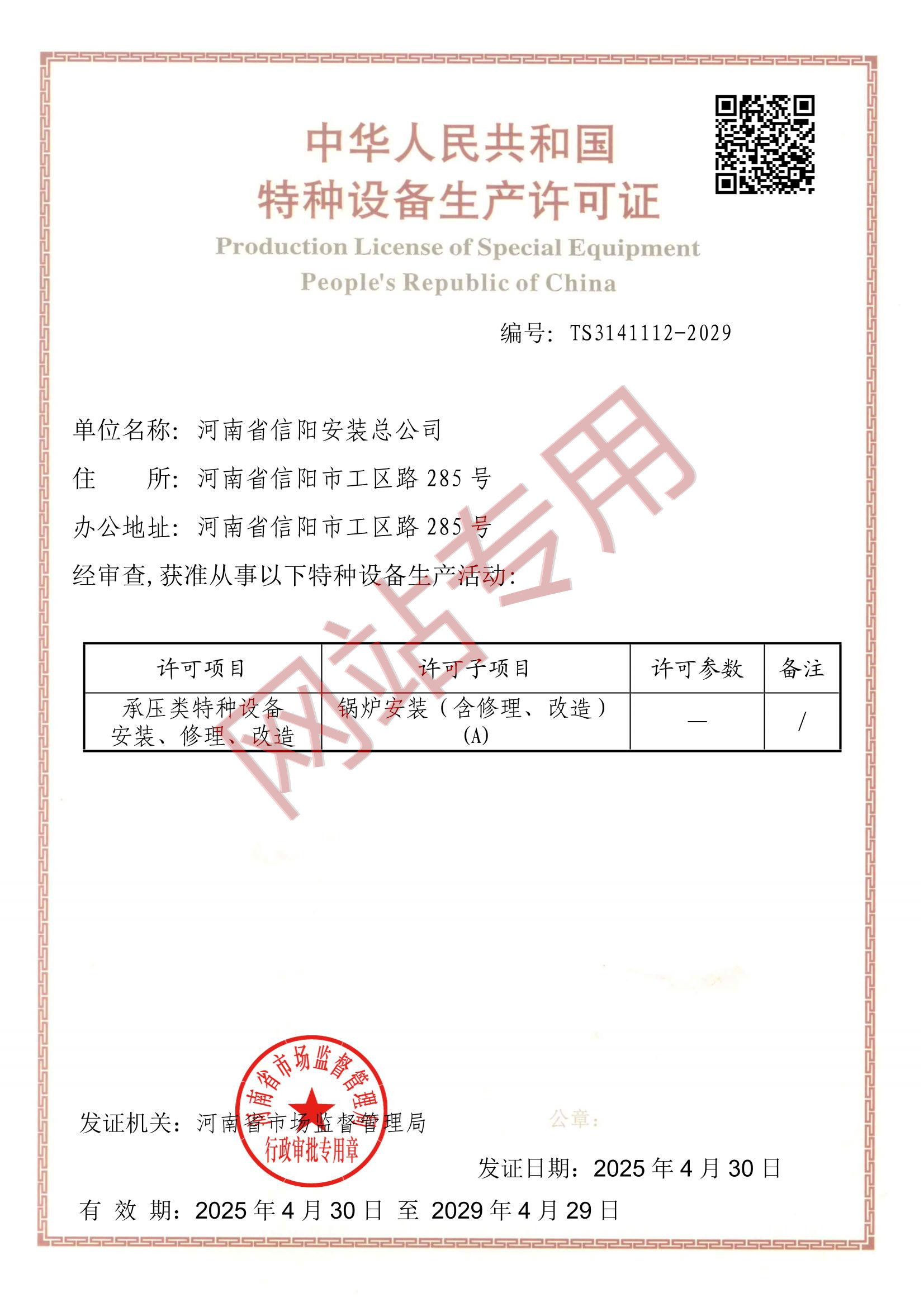 特種設(shè)備安裝改造維修許可證(鍋爐)