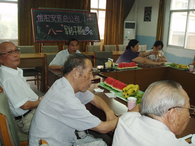 2011年8月1日下午,信陽安裝總公司召開“八一”軍轉(zhuǎn)干座談會,會議由公司黨委副書記汪光銀主持。會上,汪書記首先向軍轉(zhuǎn)干們表示誠摯的慰問和良好的祝愿,對他們?yōu)楣窘ㄔO(shè)做出的重要貢獻表示衷心的感謝,同時向他們介紹公司經(jīng)營發(fā)展現(xiàn)狀,希望他們繼續(xù)發(fā)揚優(yōu)良傳統(tǒng),對公司多提寶貴意見和建議,同時對工作中存在的不足給予批評、指正。