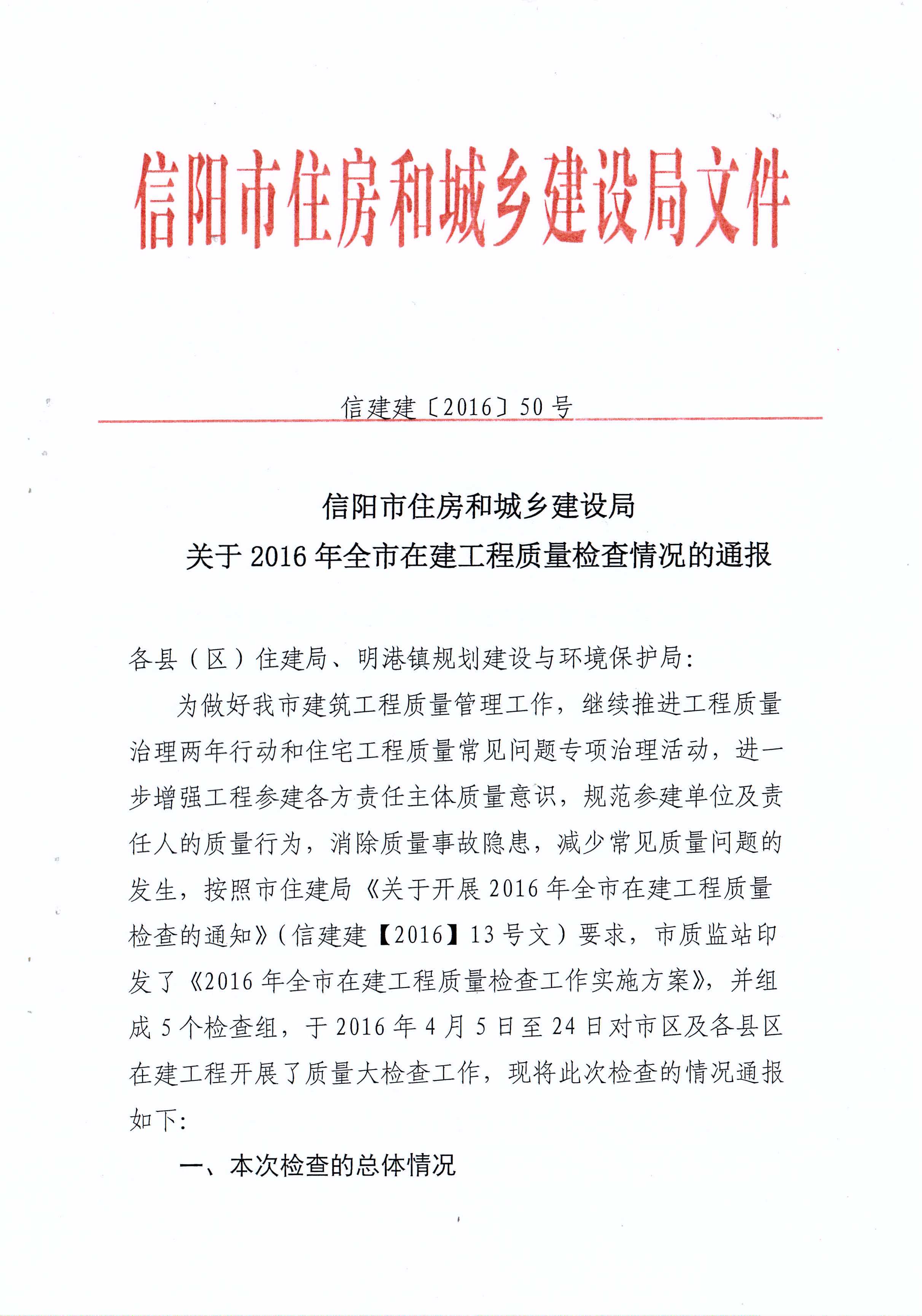 轉(zhuǎn):信陽市住房和城鄉(xiāng)建設局關(guān)于2016年全市在建工程質(zhì)量檢查情況的通報