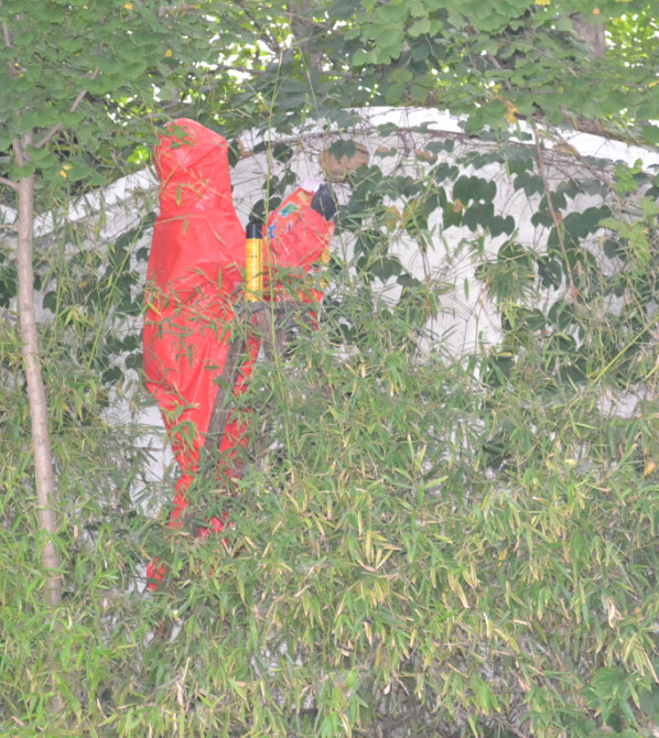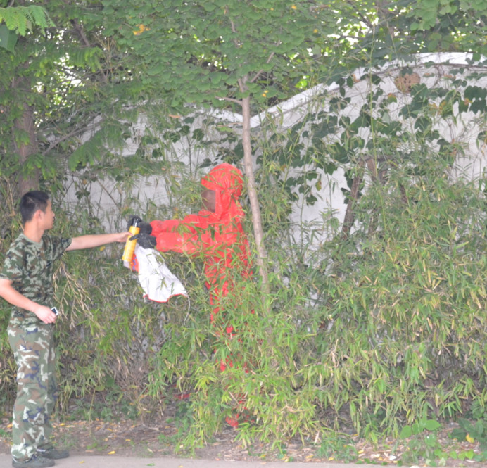 近日,公司職工住宅小區(qū)有居民反映,住宅區(qū)小花園墻上有馬蜂窩,已經(jīng)將幾個在附近玩耍的小孩蟄傷,影響居民生活。物業(yè)公司負責(zé)人王幼文經(jīng)理了解情況后,立即采取防護措施,疏散周圍休閑的居民,及時與消防支隊取得聯(lián)系。2012年8月16日下午,消防人員趕到現(xiàn)場,由穿上防蜂服的一名官兵,利用殺蟲劑的噴霧掩護,迅速用編織袋將馬蜂窩套住并成功摘除,為小區(qū)居民及時消除了安全隱患。